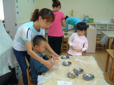 孩子们和老师一起制作月饼!
