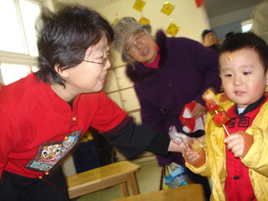 2007年12月26-28日,幼儿园内张灯结彩,家长、孩子、老师欢聚一堂,一起迎接新年的到来。这一天,孩子们是乐翻了天,家长们也享受着亲子同乐的温馨和快乐,现场制做的冰糖葫芦更是沁人心肺,让人难忘。