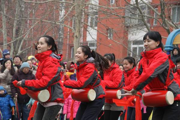 老师们的腰鼓队出场了!