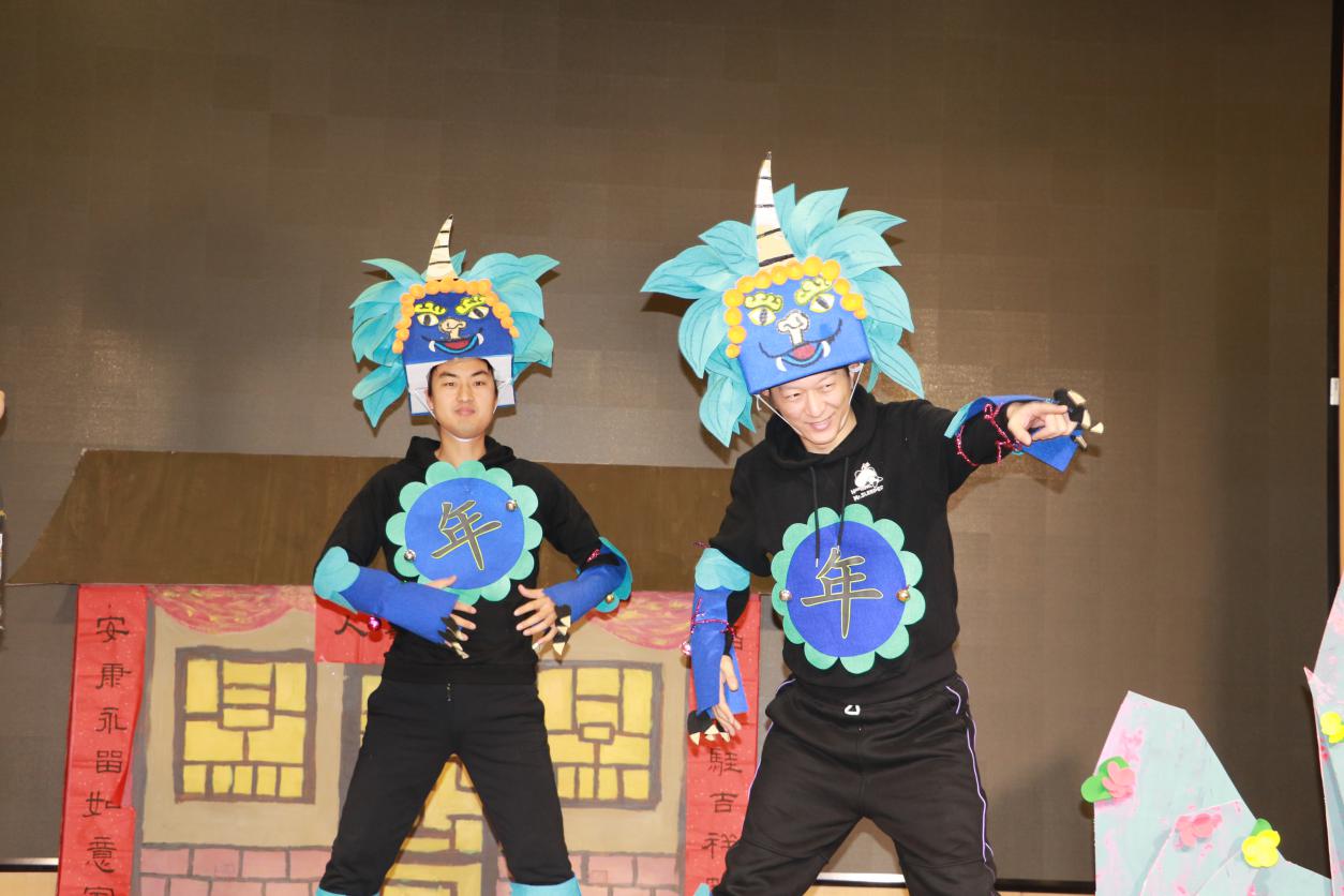 台上智斗大年兽,台下鼓掌把油加。