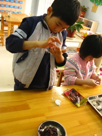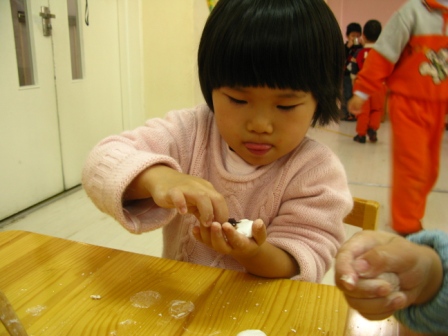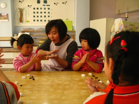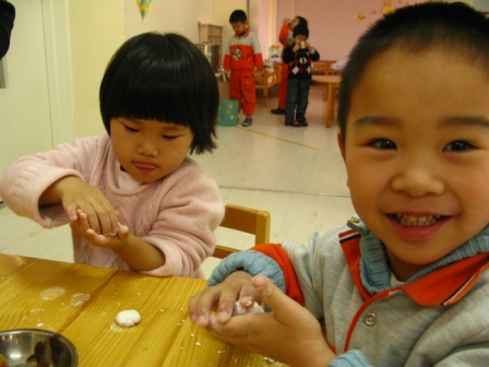 月儿圆,人更圆。今天是农历正月十五,也是幼儿园新学期开学之日,静寂了两周的幼儿园,又充满了歌声与笑语。小朋友、老师、家长再次见面分外亲切。“好想你呀”“过年好”“让老师抱抱”是今天早上在幼儿园里出现频率最多的词语。元宵佳节庆团圆,白天在幼儿园与老师、小伙伴团圆,晚上与家人团聚,为了庆祝这美好的佳节,老师们带幼儿包汤圆、庆团圆,共同感受节日的喜庆。 悉心观看汤圆的制作过程 看我的汤圆又大又园,肯定好吃! 师徒配合,汤圆更香! 包汤圆不仅把美味包进去,而且把快乐也一同包进去。 精雕细琢,大班哥哥就是不一般啊! …对,就这样转啊转! “看!我揉的多圆” 倾注“专心”的汤圆一定很好吃 汤圆的包制方法 小班的弟弟妹妹不示弱,从各自的表情上看出对包汤圆的不同感受 参与的喜悦“包汤圆真好玩!”(右) 认真执着“我一定要把馅包进去”。 面对胜利的果实,九游的态度 ——“汤圆汤圆就是圆,再看看,不圆的汤圆拿出来再揉揉” |