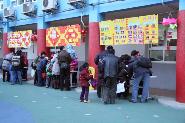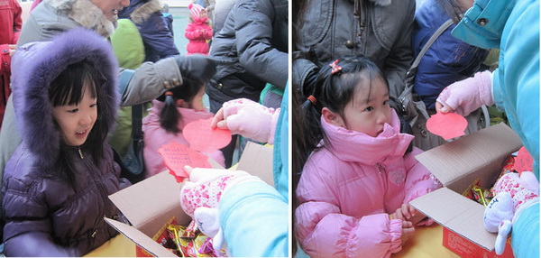 在孩子们的期盼中,猜灯谜的日子来到了。尽管12月23日、24日的早上非常寒冷,但家长和孩子们赏花灯、猜灯谜的热情却格外高涨。火红的灯笼下,一张张天真的笑脸、一个个凝神思考的神情,凝聚成一幅幅温馨生动的画面。兑奖处前人头攒动,快乐,在孩子们猜中谜底的兴奋和拿到奖品的满足中荡漾开来……