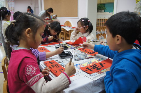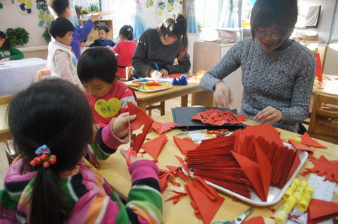 (新年传真之二) 一年一度的庆元旦、迎新年活动正在热烈而隆重地开展着。为了让孩子们既接受传统文化的熏陶,又有快乐的体验,全托班老师们围绕幼儿喜欢生动形象、颜色鲜艳的直观视觉刺激的特点,充分运用自己传统节日中的文化资料,精心策划了“民俗美工日”活动,受到孩子们的热烈欢迎。 12月18日上午,全托班利用各个教室开辟了多个活动区,包括剪窗花、贴福字、写马年吉祥话、做拉花等传统手工艺项目。大孩子、小孩子们手拉手自主选择游艺活动,每个活动项目都让孩子们爱不释手,欢乐的新年气氛溢满整个幼儿园。 剪窗花 马年吉祥话 马年做“马” 做拉花 腊梅朵朵开 马年吉祥 大姐姐带着小妹妹去各班参加美工活动呢! 感谢家长志愿者们的大力支持 |