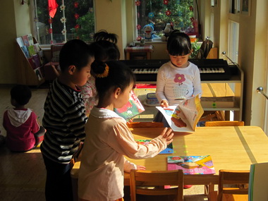 有些班级发动家长将自己看到的比较好的育儿书籍拿到幼儿园分享,布置了家长图书馆。家长们从中借阅书籍,从而达到好书共享的目的。