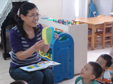 妈妈来到幼儿园给九游讲《小蓝和小黄》,还准备了充足的材料