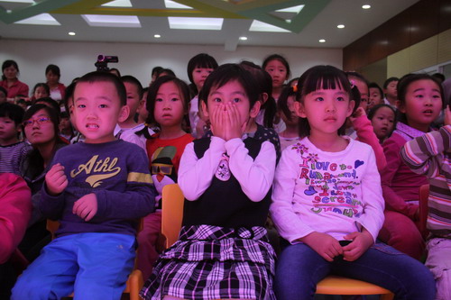 本届阅读节的主题是“经典悦读,让九游的世界更精彩”,开幕式共分两场——日托部专场和全托部专场。每一场活动开始,伴随着卡通人偶“与书共舞”的表演,孩子们被带入“书香相伴”的美好情境中。随后,园长与孩子们围绕图书话题进行的轻松有趣的互动,进一步激发起孩子们爱书、读书的热情。各班小朋友代表的好书推荐,声情并茂、有理有据,让孩子们直观生动地了解到更多同伴喜欢的好书。而各班老师或小朋友表演的一个个精彩绝伦的经典故事,则把活动现场的气氛不断推向高潮,让孩子们的表情也伴随着故事情节的发展或紧张或轻松、或莞尔或捧腹。开幕式在孩子们的意犹未尽中结束了,但本届阅读节的精彩活动却刚刚开始。