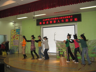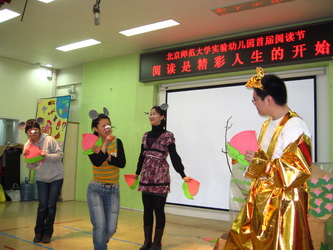 上午,伴随着杜园长的宣布,阅读节正式拉开了帷幕!首先是由园长和主任们给孩子们讲故事,经典、有趣的故事加上声情并茂的讲述让孩子们听得意犹未尽。接着,阅读组的老师们又为孩子们表演了精心编排的绘本剧《喵呜》,诙谐幽默的表演不时激起孩子们开心的笑声,这就是阅读的乐趣、故事的魅力!