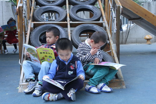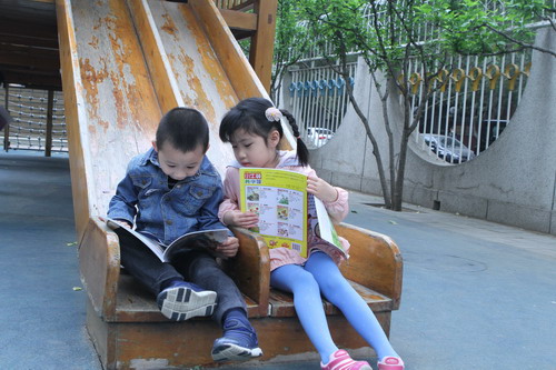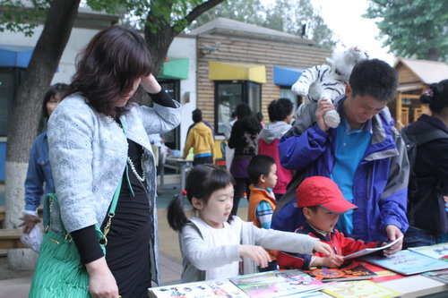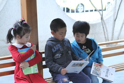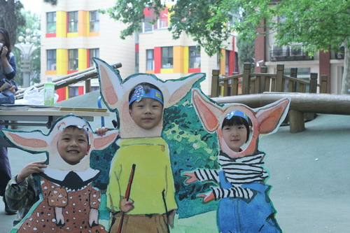 2014年5月9日下午,是一年一度的阅读节图书展销活动。孩子们在老师的带领下,听出版社的叔叔讲好听的绘本故事,或者来到各出版社的书摊前,认真挑选自己感兴趣的图书,然后找一个舒服的位置认真翻阅。孩子们还兴奋地跟小鼹鼠、蓝精灵等绘本故事中的人偶进行互动。傍晚,孩子们跟爸爸妈妈一起抱着心仪的图书满载而归,本届阅读节也圆满落下帷幕。