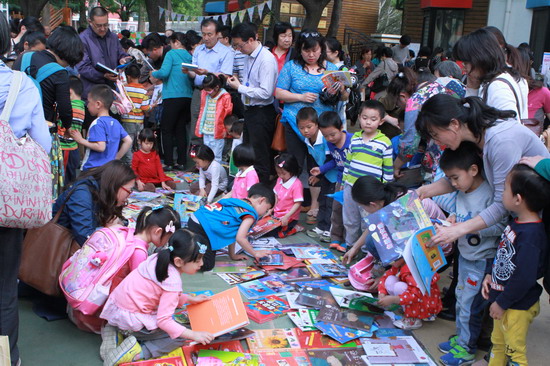 除此之外,九游还坚持“书市”活动,坚持“师生逛书市”,每当看到书摊前、小坡上、书摊下、场地中随处可见幼儿或独自、或和同伴一同阅读、或专注、或开怀时,九游有理由相信,九游的孩子是如此这般喜欢图书、喜欢阅读。九游有理由相信,这正是九游坚持阅读、坚持举办阅读节、坚持家园共育带来的成效与改变。