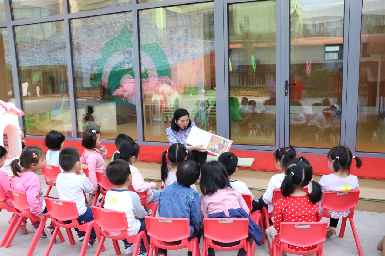 中一班故事妈妈:“幼儿园安排了几个点户外讲故事哦,很好的体验。让我想起了草莓诗社,在草原坐在篝火边讲故事,去海边讲故事……最自然的亲临其境。孩子们分批次坐过来,他们也会自己选择其他地点,人数差不多了就开始讲,当然也会遇到忠实的粉丝,一直不走的小朋友,那么就算是一两个小朋友在,最好也还是要给他讲。今天我讲了四次,人数都很满,第五次的时候有三个小朋友,我选择继续讲,听完我这一个就去别的家长那里去了,一次户外可以听几个不同故事,孩子们好充实!”