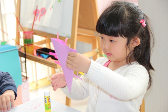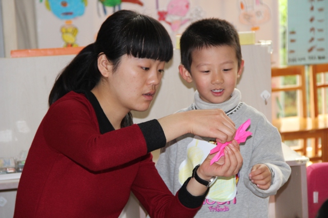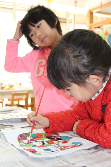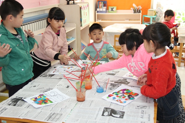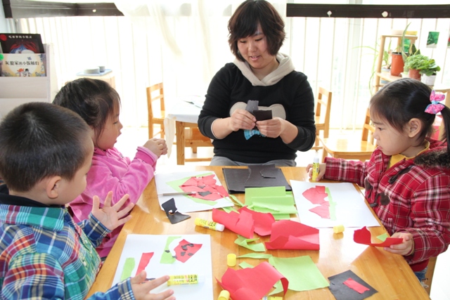 在本届图书节中,我园压轴的活动是4月26日的全园性开放式自主活动“我和图书做游戏”。本活动是在图书节系列活动的背景下,教师根据孩子们喜爱的图画书而设计开展的供幼儿自主选择、自愿参与的游艺活动。这些活动设计的原点或来源于孩子们对某一本图画书的兴趣和关注点,或来源于教师对图画书自身突出特点的再创造,活动内容有趣味的手工小制作,例如:源于《红熊绿熊》的“红熊绿熊小书签”、源于《精灵鼠小弟》的“精灵小鼠手提袋”、源于《好饿的毛毛虫》的“蝴蝶夹子”、源于《风喜欢和我玩》的“风车转转”、源于《蚂蚁和西瓜》的“撕纸画”等,还有好玩的游艺项目,例如:源于童话故事的“照相馆”、源于《隧道》的“走迷宫”等。