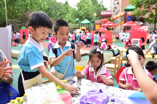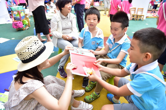 当“小鬼当家”与“阅读”相遇,“玩转绘本”便成了孩子们最快乐的事!2016年5月25日,为了庆祝即将到来的“六一儿童节”望京分园的孩子们迎来了他们最为期盼的“小鬼当家”活动。此次“小鬼当家”活动九游将绘本故事、领域知识和游戏项目融合在一起,让孩子们在绘本游戏中获得全面发展。如体能类“好饿的毛毛虫”以钻、爬、跳、坐位体前屈闯关的形式,模拟毛毛虫吃东西的故事内容,锻炼了幼儿体测中比较薄弱的体能;“大卫扔水球”通过投掷不同距离、不同目标的水球,让幼儿用游戏的方式模拟大卫的“淘气”行为,锻炼幼儿投掷的能力;健康类“爱喝果汁的牛”,通过让幼儿亲手榨果汁品尝,激发幼儿喜欢吃水果的欲望;益智类“花格子爱玛”让幼儿抽取图卡,根据图卡上的颜色的规律,在花格子大象身上跳跃闯关;故事表演类“一园青菜成了精”为幼儿自主表演提供了公共的舞台,展现了幼儿的自信与快乐……通过游戏前了解项目对应的绘本故事内容,幼儿的阅读兴趣得到了有效的激发;通过游戏过程中多感官的体验,幼儿对故事的理解也得到了进一步的加深。总之,游戏的快乐让孩子们更加爱上了阅读!