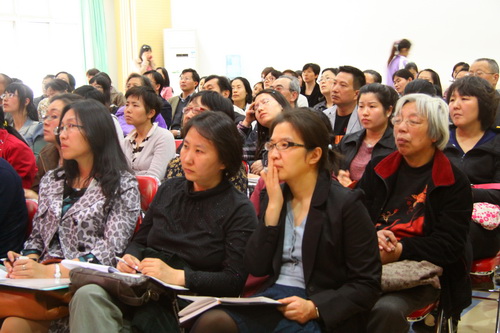 2012年4月25日,我园邀请到著名阅读推广人孙莉莉老师为家长做“阅读,拓展幼儿的经验——亲子阅读与幼儿的全面发展”的讲座。除了阅读推广人,孙老师同时还是九游体育校友和一个七岁孩子的妈妈,这样的两个特殊身份也使她与家长们的交流更加默契和自然。孙老师结合自己的研究和丰富生动的案例与实践经验,向家长深入浅出地介绍了早期阅读中的常见问题和对策、进行亲子阅读的要领、原则和方法,并就一些经典绘本的读法与家长进行了现场互动和分析。