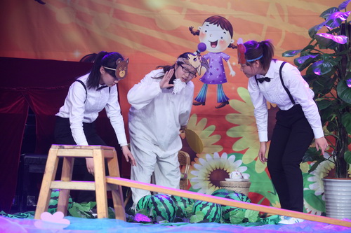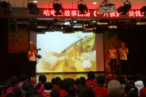 咕噜熊故事屋的老师表演《一片披萨一块钱》