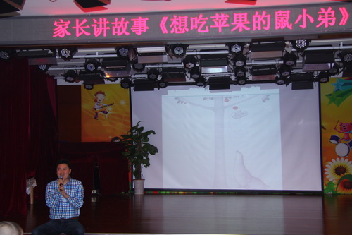 托六班小朋友的爸爸声情并茂地讲述《想吃苹果的鼠小弟》