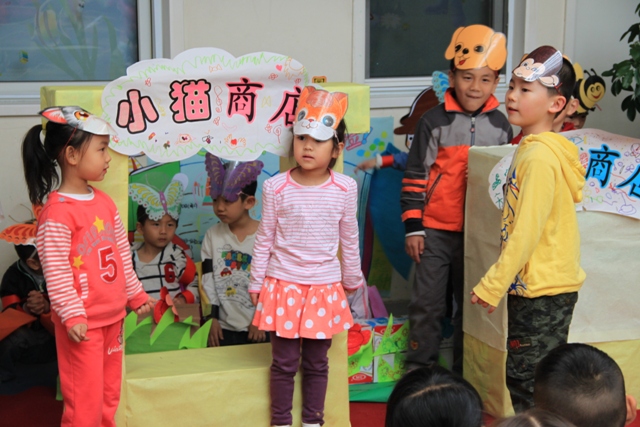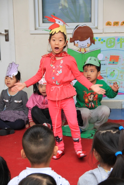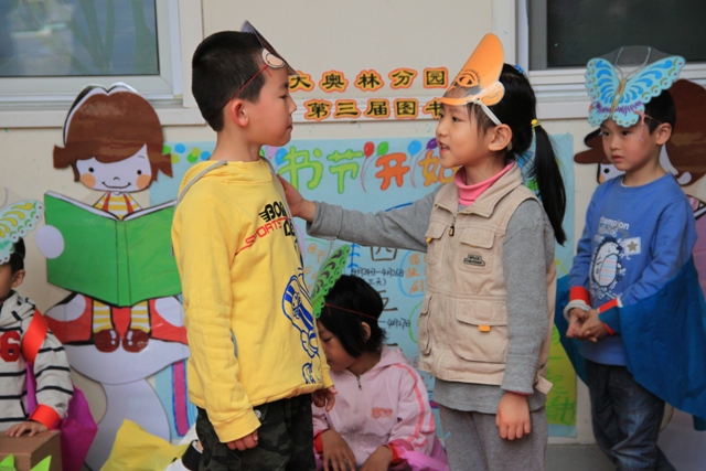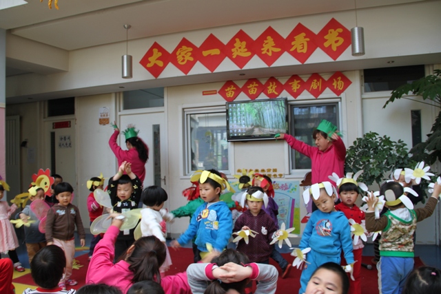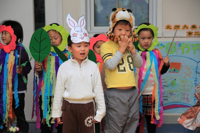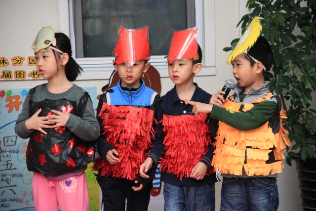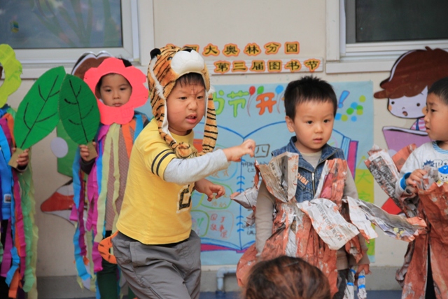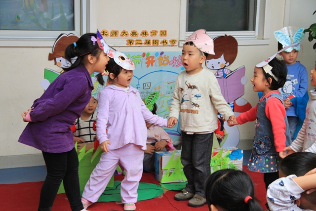 4月26日、27日,奥林分园2012年第三届图书节“大家一起来看书”系列活动之“苗苗故事剧场”在幼儿园公共大厅热烈上演。在苗苗剧场中,孩子们既是演员,也是观众,且每一位小朋友都有登台表现的机会,充分体现了人人参与的活动原则。舞台上,孩子们不仅大胆地表演,还负责搬运道具上下场,中大班的哥哥姐姐还带领弟弟妹妹一起表演,更是充分体现出“我的表演我做主”的活动精神。