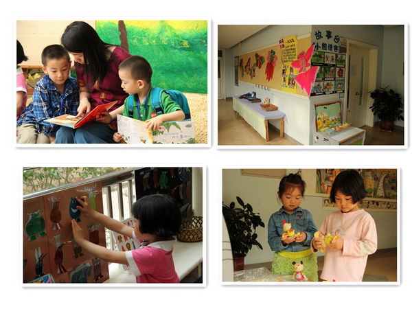 孩子们在春意浓浓的环境中,既可以一个人静静地看书,也可以和老师、爸爸妈妈一起讲书,还可以边看书边玩游戏……,孩子们在看、听、说、做的过程中,一个个精彩故事流入心田,一幅幅美丽的画面印在脑海中,让美围墨幽绕童年,“阅读悦美”。