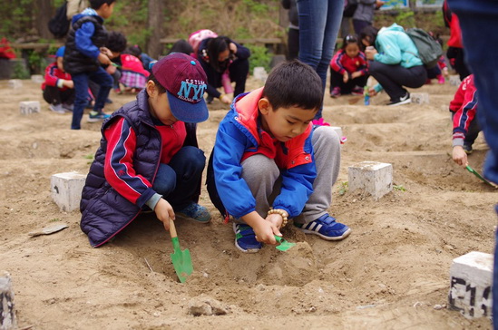 孩子们在周口店体验考古挖掘