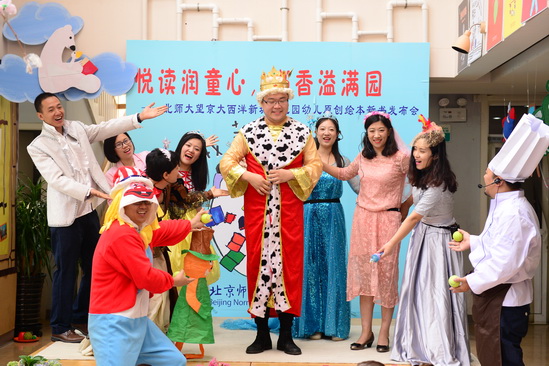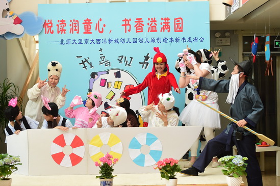 2016年4月26日,在全园师生和家长的精心准备下,望京分园终于迎来了期盼已久的阅读节开幕式活动。本次阅读节开幕式最重要的内容就是为九游去年一整年的教研和教学活动成果——幼儿原创绘本做新书发布会。经过4个多月的编排和校对,在四位热心家长的帮助下,孩子的绘画作品终于变成了一本本精装的绘本故事。看着自己的书被自豪地介绍给大家,孩子们和老师们激动的心情洋溢在整个会场。新书发布会后,孩子们还一起欣赏了家长剧团表演的精彩绘本故事《甘伯伯去游河》、《胖国王》及由混龄四班小朋友表演的原创绘本故事《新编小蝌蚪找妈妈》,渡过了一上午的快乐阅读时光。
