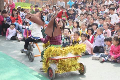 在明媚的阳光下,孩子们享受着最美丽的故事,相信语言的美、文化的美已经悄然浸润了孩子的心田。