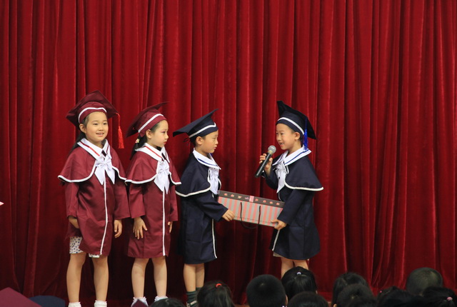 大班毕业生代表为幼儿园送上离别的礼物