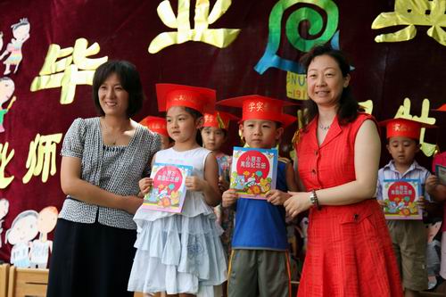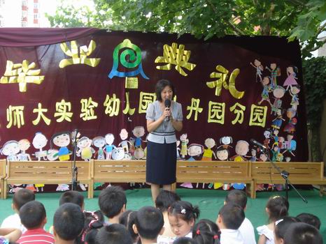 黄珊总园长也在百忙之中来到毕业典礼现场,祝贺孩子们长大了