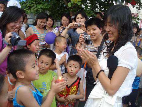 黄园长将象征着光明、智慧和爱心的蜡烛传递给孩子们