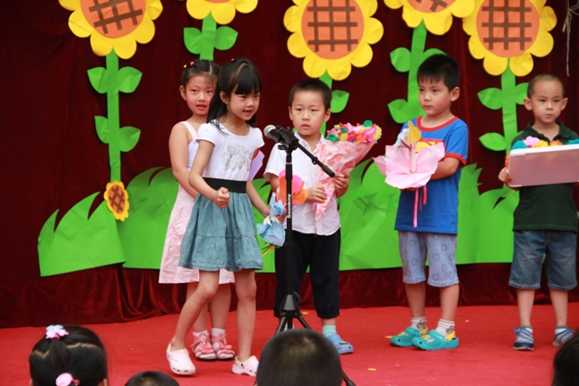 中班小朋友向哥哥姐姐送祝福,及自己亲手制作的礼物