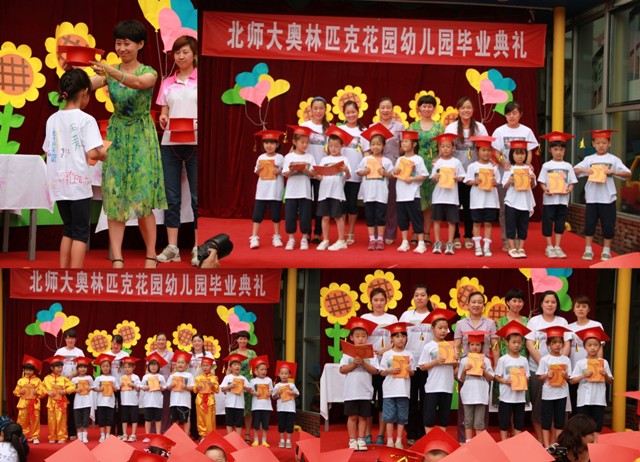 最激动人心的时刻是高园长、夏主任为全体毕业生颁发毕业证书和戴博士帽,孩子们光荣地获得了人生中的第一张毕业证书。