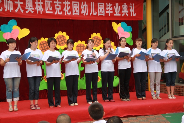 接着,高园长代表全体教职工对大班小朋友表达美好的祝愿,并就家长三年来对幼儿园工作的支持和配合表示衷心的感谢。我园家长楠楠妈妈代表毕业生家长发言,深情地表达了对幼儿园老师们辛勤培育的敬意,一句“谢谢老师、谢谢幼儿园”发出了家长们的心声。大班毕业班的十位教师代表还深情朗读《教师致词》,朗诵未毕,老师们潸然泪下,浓浓的师生情谊地久天长!