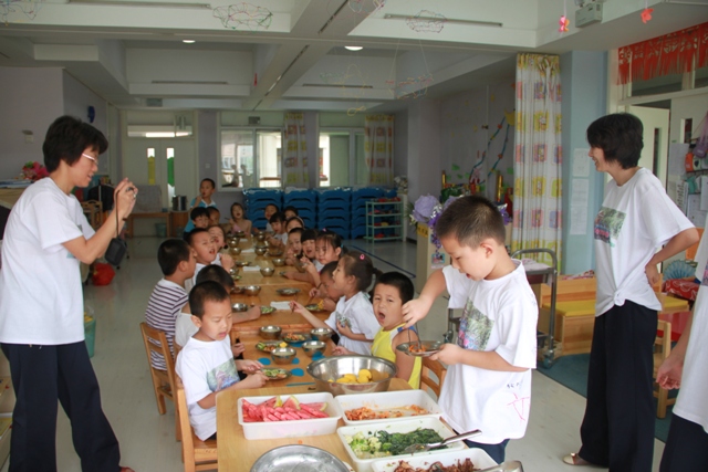 孩子们将鲜花送给各岗的老师们,表达自己的谢意