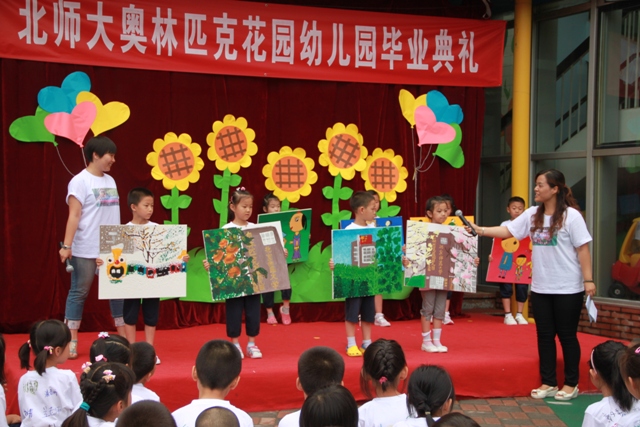 大班毕业生将自己的“画作”送给幼儿园做礼物
