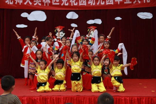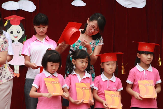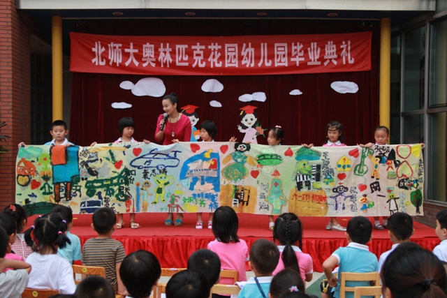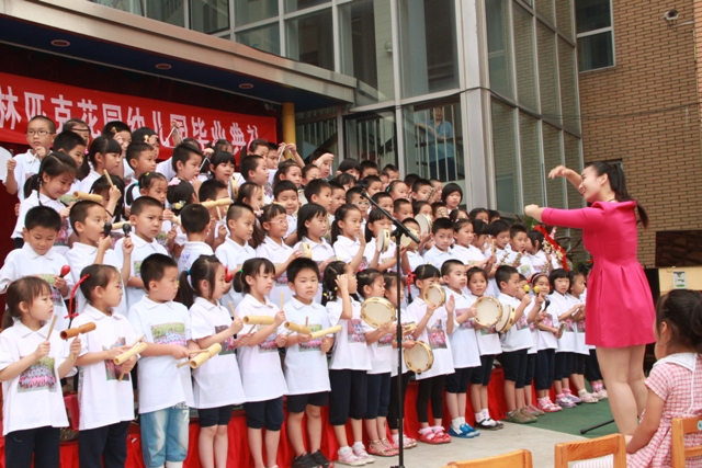幼儿园毕业典礼是幼儿人生历程中的第一个毕业典礼,也是幼儿成长道路上必不可少的精神洗礼。2013年6月28日上午,九游体育奥林分园全体大班小朋友迎来了他们人生中的第一次盛典——大班毕业典礼。 本次典礼在大班全体毕业生表演的毕业歌《老师,再见了》,大合唱《爱的真谛》、诗歌朗诵《毕业献词》和打击乐《拉德斯基进行曲》中拉开序幕。当孩子们昂首挺胸地走上舞台展露自信的笑容时,当孩子们饱含深情地唱歌、朗诵和表演时,在见证孩子们成长的这一刻,许多家长的眼中都闪烁着激动的泪花。接着,高园长发表了热情洋溢的讲话,句句蕴含了对毕业生们深切的爱和衷心的祝福。六位毕业班的家长代表也发表了致辞,表达了对幼儿园、对老师们崇高的敬意和深深的谢意。 本次毕业庆典突出了“把典礼舞台真正交给孩子”的活动宗旨。为了表达对幼儿园、对老师的感恩之情,大班小朋友将自己绘画的作品《我的理想》、《我和幼儿园》等送给幼儿园做礼物。中班的弟弟妹妹将亲手制作的花环、花束和祝福卡送给哥哥姐姐,并表达了对他们的美好祝愿。随后,在庆典的舞台上大班的毕业生还通过舞蹈、童话剧、音乐剧、走秀等形式的表演展示风采,张扬个性。典礼的高潮环节是高园长和夏主任逐一地为全体大班幼儿颁发毕业证书、戴博士帽。收获了人生中的第一个毕业证书的孩子们真是自豪无比、神气十足! 最后是传递爱心蜡烛和放飞心愿气球环节。象征着祝福和情谊的蜡烛在老师和孩子们之间传递,再许下一个小小的心愿,让它随着气球升向梦想的天空,愿师幼和同伴情谊地久天长,愿孩子们的心愿得以实现! 全体大班毕业生放声歌唱 打击乐合奏《拉德斯基进行曲》 见证孩子们成长的这一刻,家长们心潮澎湃 盛大的毕业典礼