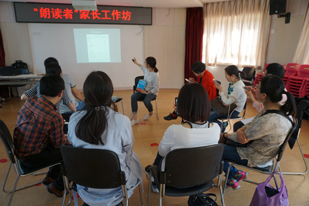 本届阅读节我园与爱心树童书馆共同策划,设计了历时四期的“朗读者”家长工作坊。爱心树的李昕主编为家长解读了阅读的重要性、如何培养一个爱阅读的孩子、不同年龄段如何选书,以及爸爸在阅读中不可忽视的作用。