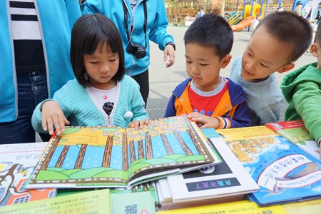 4月14日我园邀请了蒲蒲兰绘本馆、爱心树童书馆、天天出版社、接力出版社、耕林童书馆、大百科全书出版社、新疆少儿出版社七家优秀的童书出版社参与了本届图书展销。各出版社都带来了最新力作,孩子们看见有趣的图书那种闪亮的眼神和迫不及待专注阅读的神情让人感动。