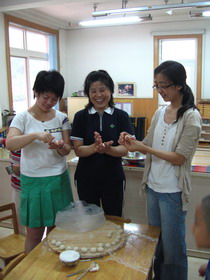 老师们和小朋友一块制作小馒头