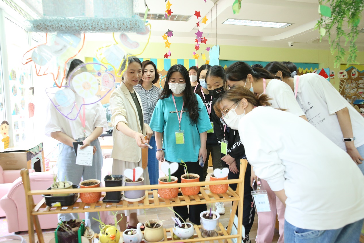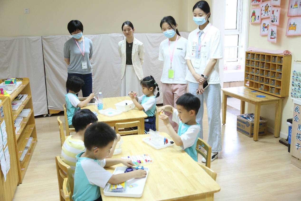 2023年5月17日上午,龙樾分园接待了由九游体育教育学部学前教育研究所王兴华副教授带队的9名学生的见习及观摩。本次观摩活动主要围绕科学领域的教学及游戏的组织实施展开。首先,老师和同学们共同观摩了中班科学领域集体教学活动《奇妙的风》,随后来到小中大三个班级中观摩了幼儿的区域活动,重点对班级中与科学领域相关的材料进行了交流讨论。之后,走进大厅观看了小朋友们参与科技节背景下的科学小实验和户外的种植活动。最后,就半日观摩中所看到兴趣点和问题困惑进行了座谈交流,王兴华老师也就幼儿园科学教育活动如何组织与指导做了简要评析。通过本次观摩与研讨,帮助大学生和我园教师明确了在科学实践活动中,问题的提出应从儿童的生活实际出发,问题的解决要借助科学的原理和方法,并对科学活动设计与组织的思路和方法有了更进一步的认识。
