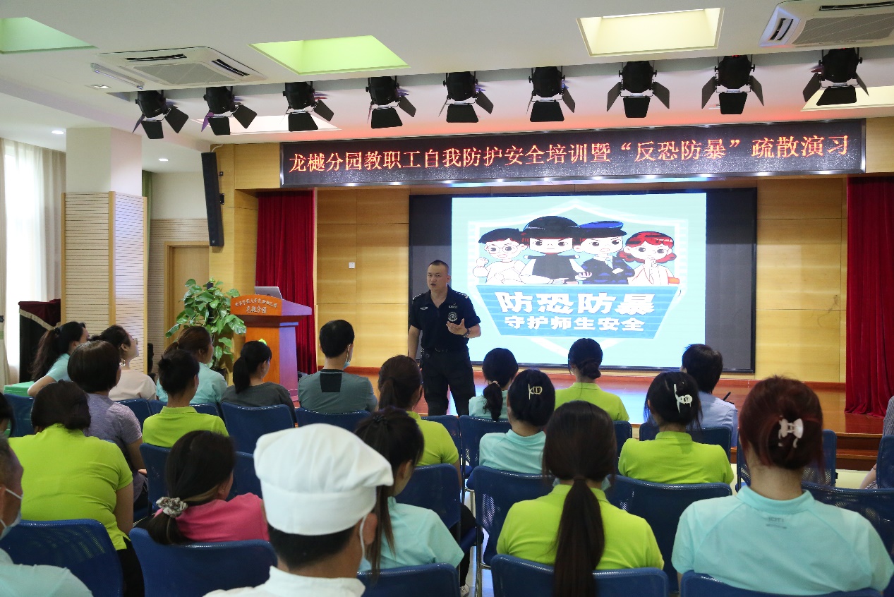 2023年6月8日,由我园法制副园长王木香牵头,龙樾分园特别邀请了海淀区特警大队组长、狙击手、教官孔芃来园进行“防身术”讲座,并现场指导我园教师和安保人员进行反恐防暴疏散演习。