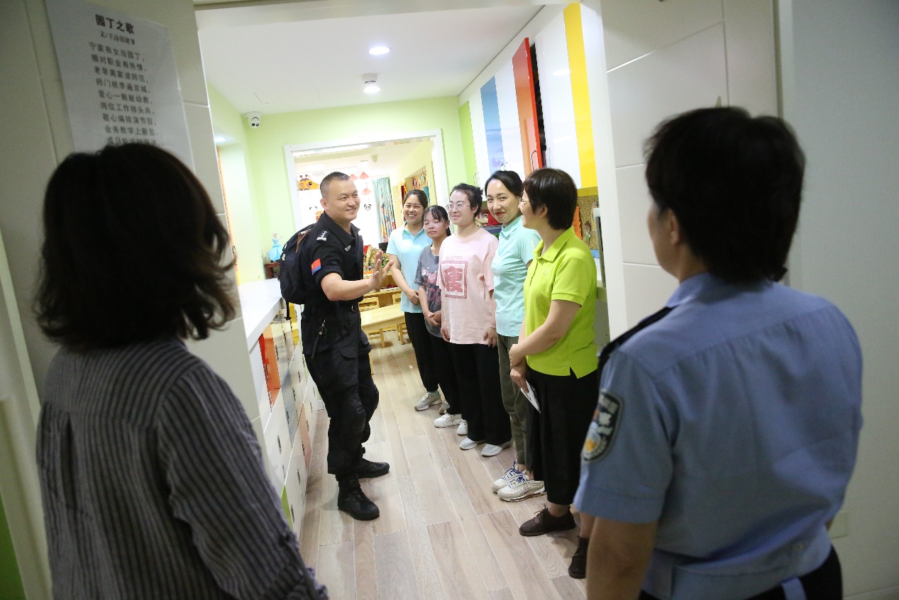 随后,孔芃教官走进班级,实地向老师展示了面对危险场景的处置办法,并对我园安保工作人员进行了安全防护的实操培训,指导安保人员进行了一次精彩的“反恐防暴”安全演习。