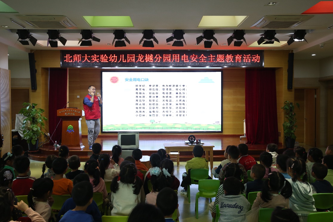 随后,面向全体大班幼儿进行了电力科普小讲座。为了让宣教活动更加生动有趣,讲师还设计了一系列互动环节,如“灯泡如何亮起来”“试验人体是否带电”等,让幼儿在实践操作中加深对安全用电的理解。