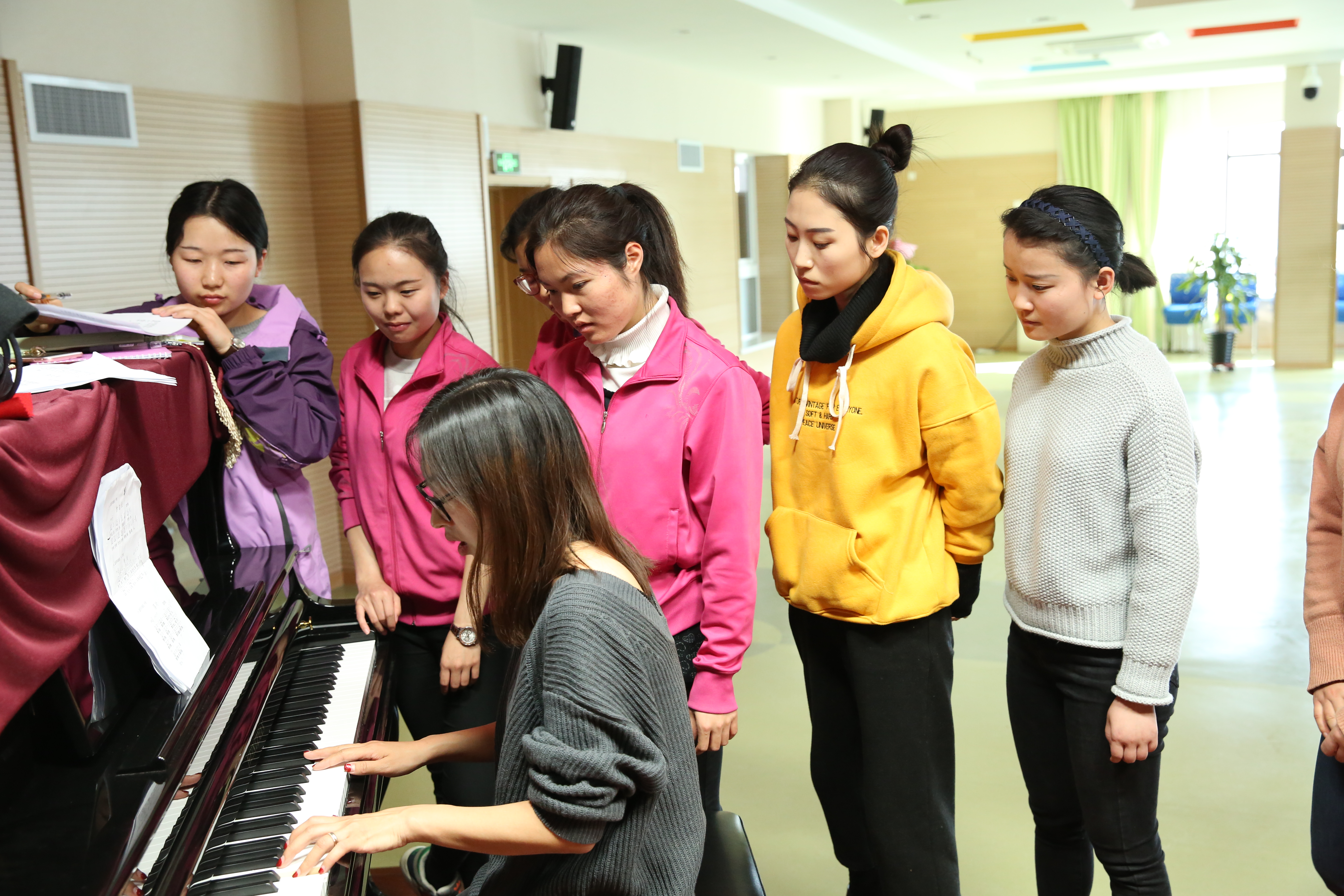 201733日至2017317日,为了帮助教师积极备战“新教师技能考核大赛”,提升教师的钢琴弹唱水平,龙樾分园特别邀请了钢琴教师指导年轻教师弹琴。通过集体指导和个别回课指导的形式,有效提升了青年教师钢琴的弹唱水平,增强了青年教师钢琴弹奏的自信,同时也促进了教师日常教学水平的提升。