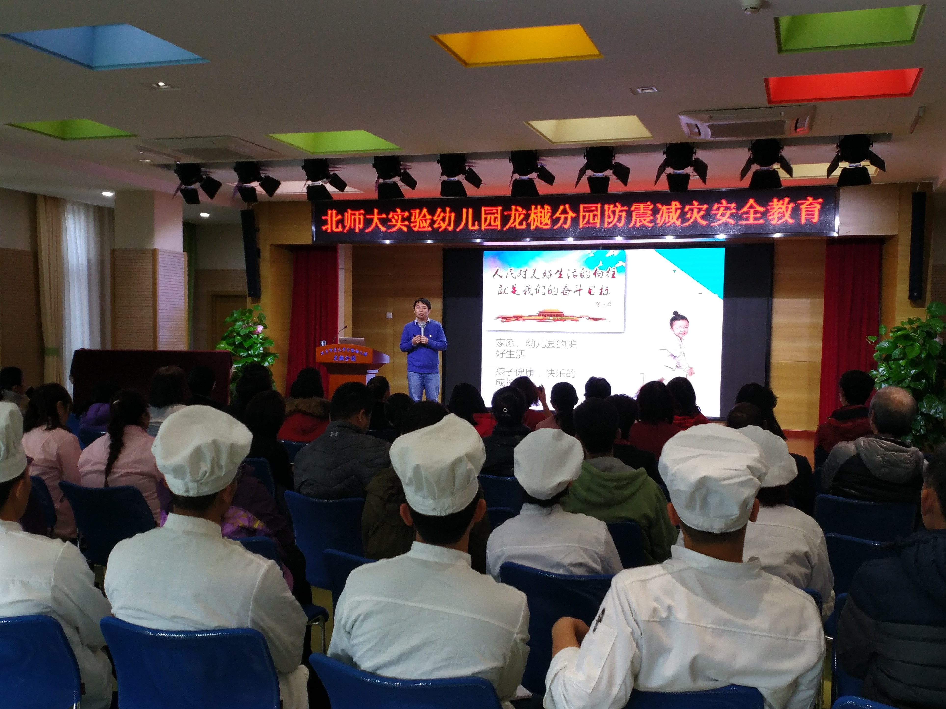 中午,龙樾分园邀请北京市地震减灾防震宣教中心的张宏宇老师开展“防震安全知识”讲座。全体教职工及部分家长参与本次讲座。讲座中,张老师全面讲解了地震带来的危害以及震后逃生自救互救的可操作性方法。