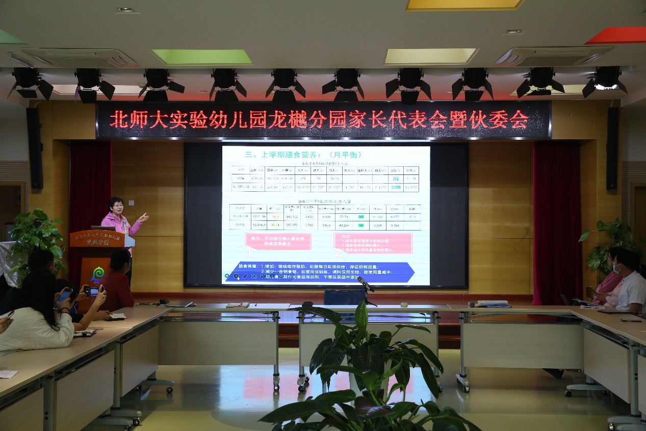 首先,执行园长高以华面向全体家委介绍了家长委员会的章程,并宣布了新一届家长教师委员会的成立,随后各位家长代表进行了自我介绍。总务主任钱丽娟围绕幼儿园的膳食管理,向在座的家长代表就膳食营养、食品安全、伙食费支出和食品采购等方面做了详细的讲解,并征集了家长代表们对于幼儿伙食方面的意见建议。