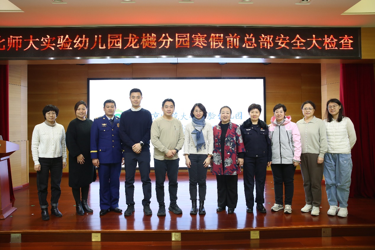 为确保幼儿园假期安全、及时排查消除安全隐患、筑牢校园安全防线,2025 年 1 月 8 日,在九游体育夏华颖总园长的带领下,九游体育副总务长赵强、保卫处副处长王皓莅临龙樾分园进行假期前全面的安全检查工作,同时还特别邀请了我园法治副园长王木香警官和清河消防中队王会伟指导员一同来园检查指导,随行前来进行检查工作的还有总园长行政助理鞠亮、总务督导江克玲和总部教研员吴迪。