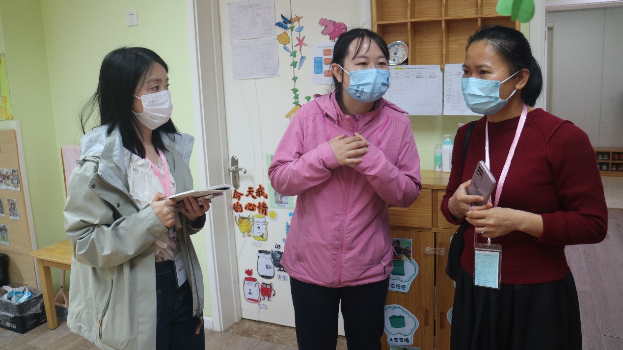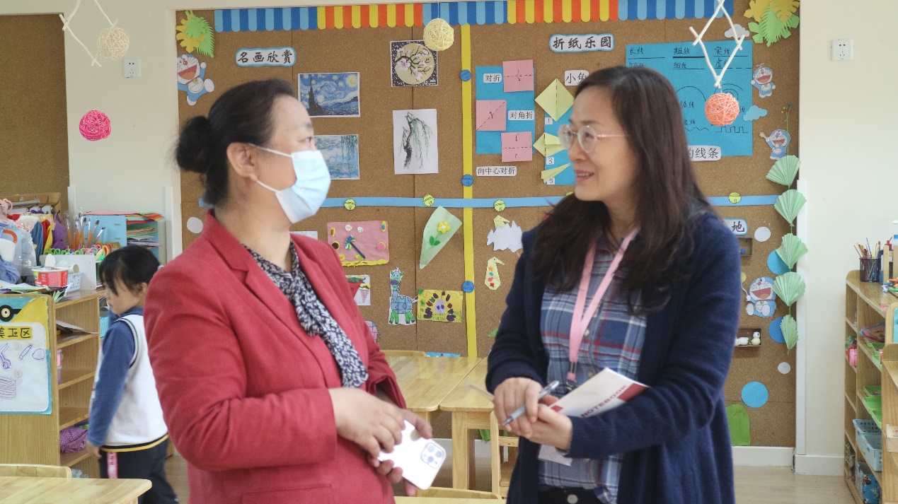 保教组的老师分别就地下画展、大厅园所文化、室内外的环境布置以及班级中区角设置、文字材料等内容进行研讨学习;总务组的老师重点就库房、厨房的精细化管理和班级保育常规与流程进行交流学习;保健组的老师通过观摩保育实操、介绍进餐管理和各类健康宣教等活动了解了保健室细致规范的工作内容;教学班组的老师在半日跟班的过程中全面了解了幼儿的半日在园生活流程。此外,通过两场参与式的教研活动,促进了海南的园长老师们与我园教师进行了深入的研讨与交流。