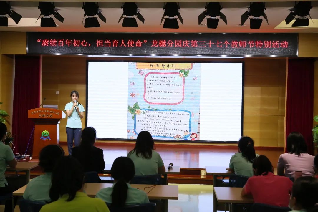 习近平总书记说:“百年大计,教育为本。教师是立教之本、兴教之源,承担着让每个孩子健康成长、办好人民满意教育的重任。”桃李花开,感恩有你。在第三十七个教师节来临之际,龙樾分园全体教师参与了教师节丰富多彩的庆祝活动,共同回顾教师节的历史、重拾实幼人的初心、鼓起新征程的士气、树立“好老师”的信念。