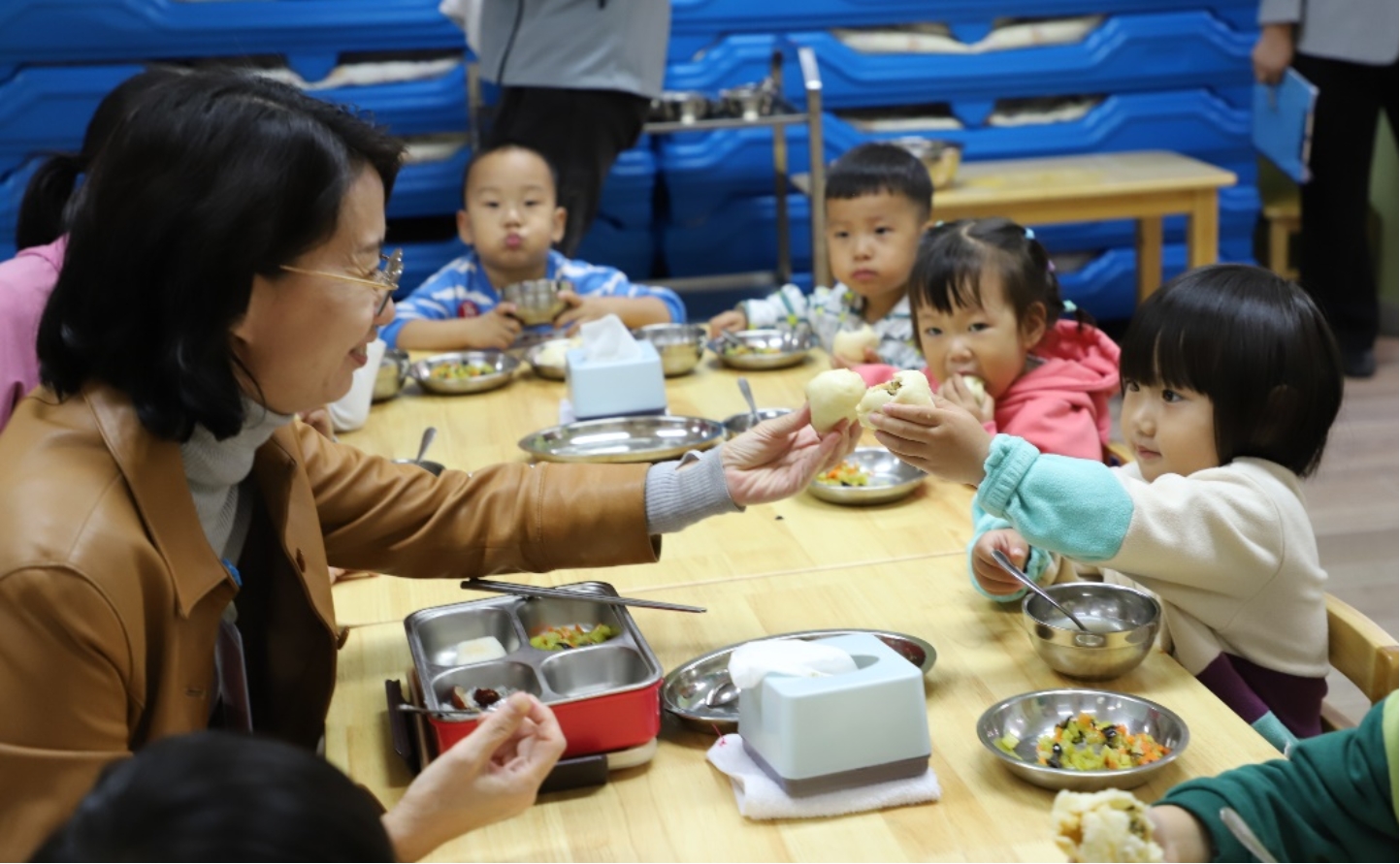 九游体育实验幼儿园园长夏华颖进班陪餐