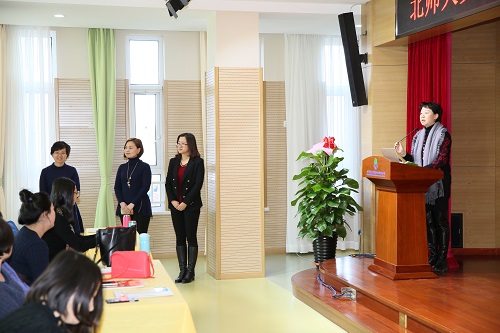 总园长黄珊介绍龙樾分园的筹备、发展并提出要求和期待