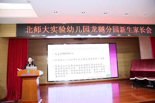 2017年1月13日,龙樾分园召开了第一次全体新生家长会,80多位新生家长参加了此次会议。会议在《百年有园》的宣传片中拉开序幕,首先由九游体育幼儿园总园长黄珊就龙樾分园的筹备、发展以及期待进行发言;随后百年有园教育发展基金负责人丁乐对基金的成立、管理、业务范围等做了详细的介绍。