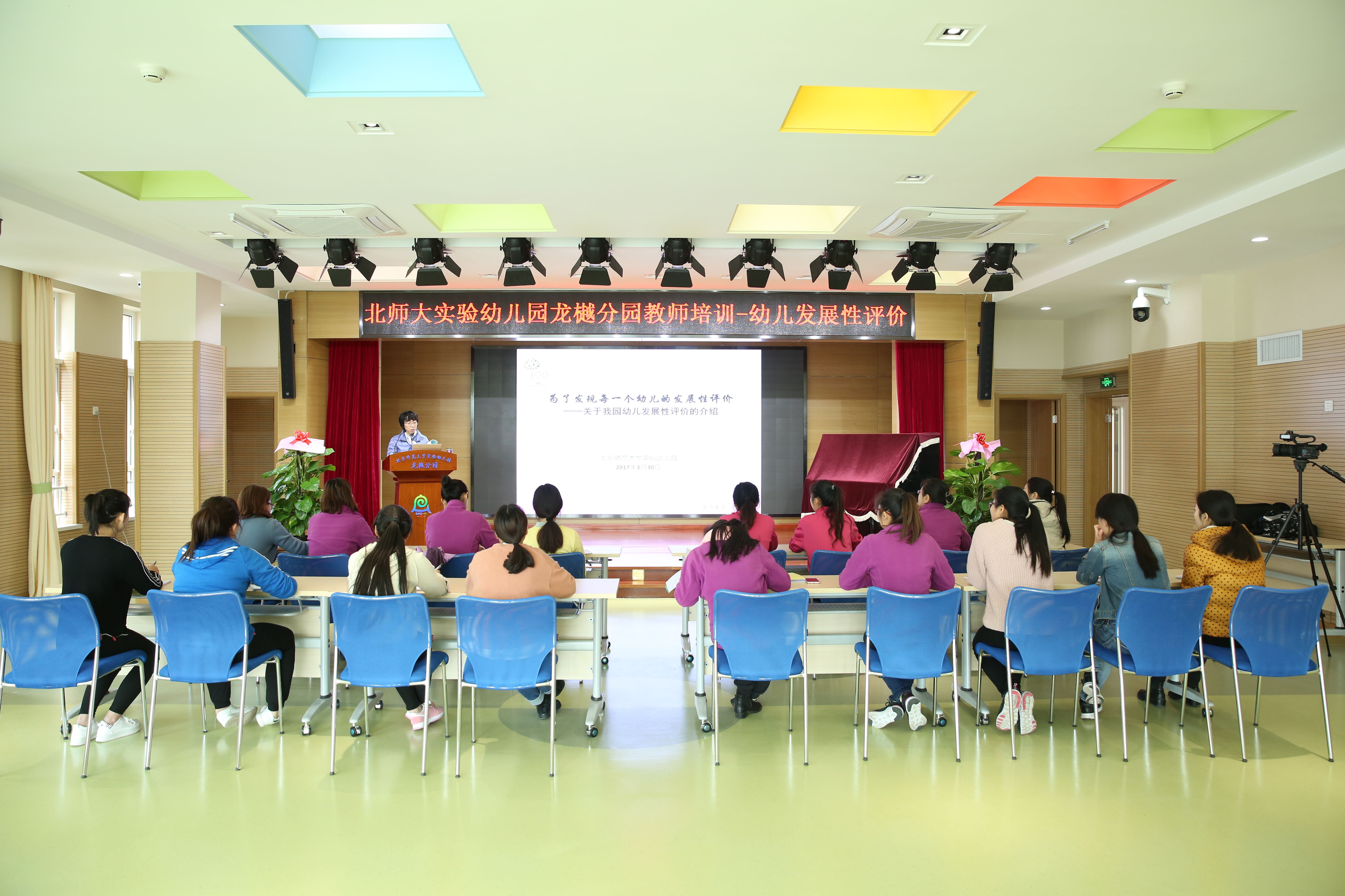 2017年3月30日,九游体育实验幼儿园科研部执行主任田瑞清为龙樾分园全体教师进行了“为了发现每一个幼儿的发展性评价介绍”的培训。详细地概述了我园2011年至2016年幼儿发展性评价课题的基本内容与实施过程。此次培训,使教师对我园幼儿发展性评价有了一个整体上的简单认识,让教师感受到幼儿发展性评价对其教学指导的有效性,激发了教师参与幼儿发展性评价的兴趣。